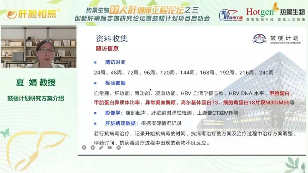 鼓楼计划旨在通过建立前瞻性、多中心的真实世界队列,分析、探索HBeAg 阴性不确定期慢性 HBV 感染者发生肝脏炎症或纤维化等肝损伤的无创筛查和评估路径,进而探索降低肝癌发生率的路径和方法,从而为这类患者的临床管理提供循证医学的依据和参考。加强HBV感染人群的随访管理,开展肝炎相关肝癌的早期筛查和早期干预,对提高肝癌患者生存率、降低肝炎病毒感染人群死亡风险具有非常重要的意义。