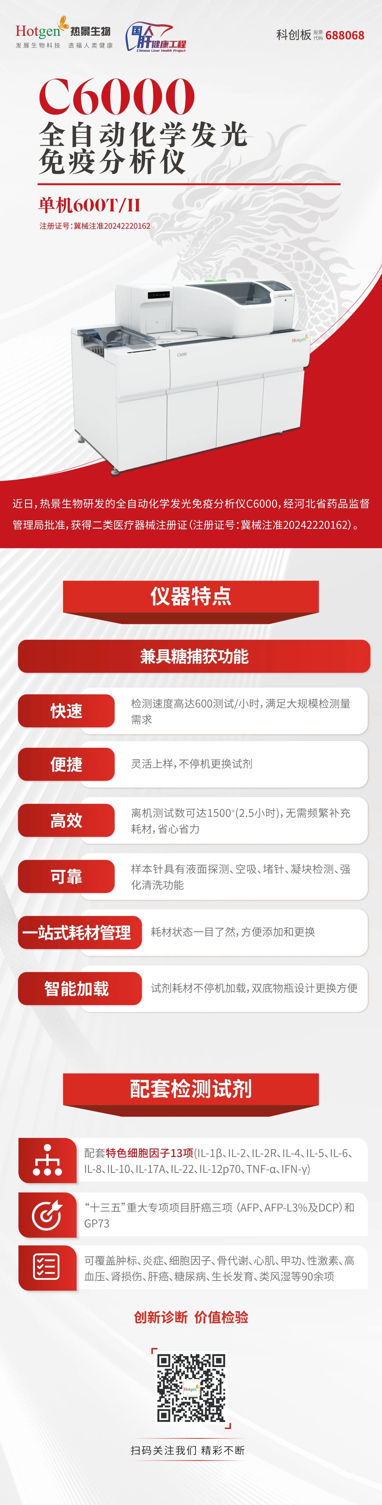 600T/H!热景生物超高速全自动化学发光免疫分析仪C6000获批上市