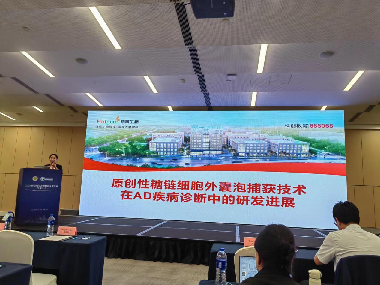 在分论坛,许立达研究员作了“原创性糖链细胞外囊泡捕获技术在AD疾病诊断中的研发进展”主题报告,详细介绍了热景生物原创的糖链外泌体捕获技术,以及在AD、肝癌、胃癌等众多领域的研究进展,获得在场人员的高度认可。