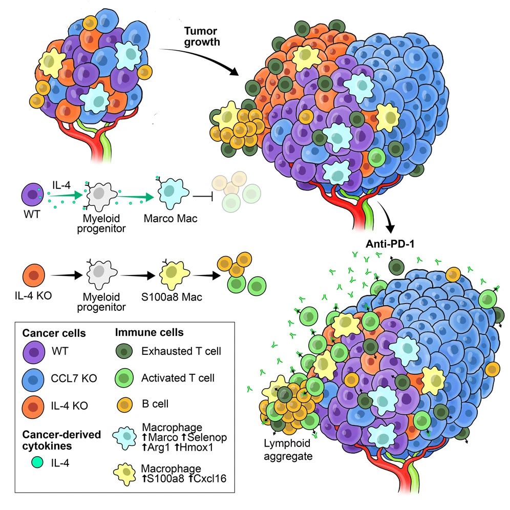 “令人惊讶的是,即使在含有产生il -4的癌细胞的肿瘤中混合,缺乏il -4的癌细胞也被免疫系统消除,这种现象称为肿瘤内异质性,这也有助于癌症的耐药性,”Brown博士说,他是西奈山基因工程教授和该研究的高级作者。