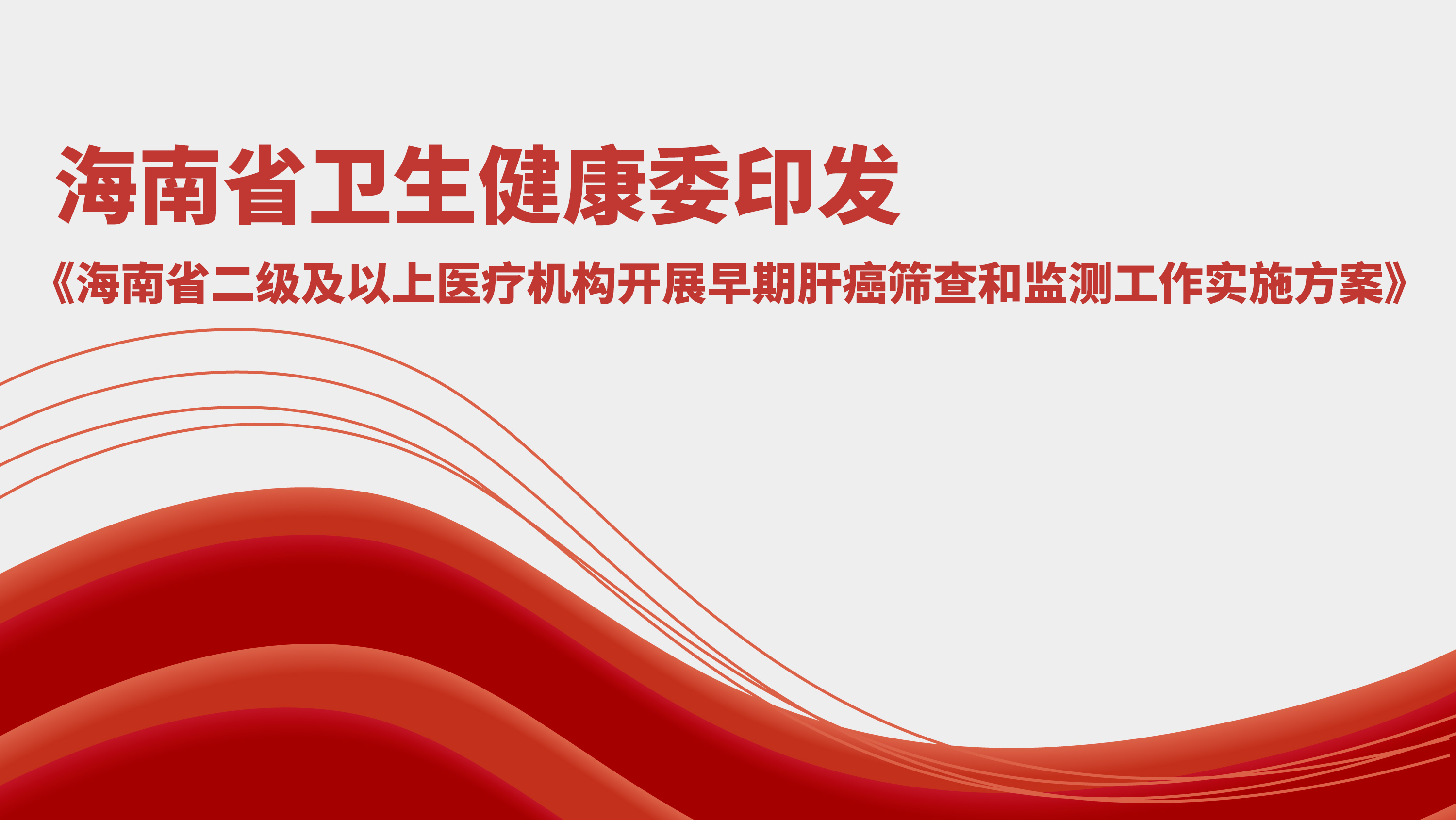 近日,海南省卫生健康委印发《海南省二级及以上医疗机构开展早期肝癌筛查和监测工作实施方案》(以下简称《方案》),计划在全省二级及以上医疗机构建立早期肝癌筛查和监测工作机制,进一步做好海南省“2+3”健康...