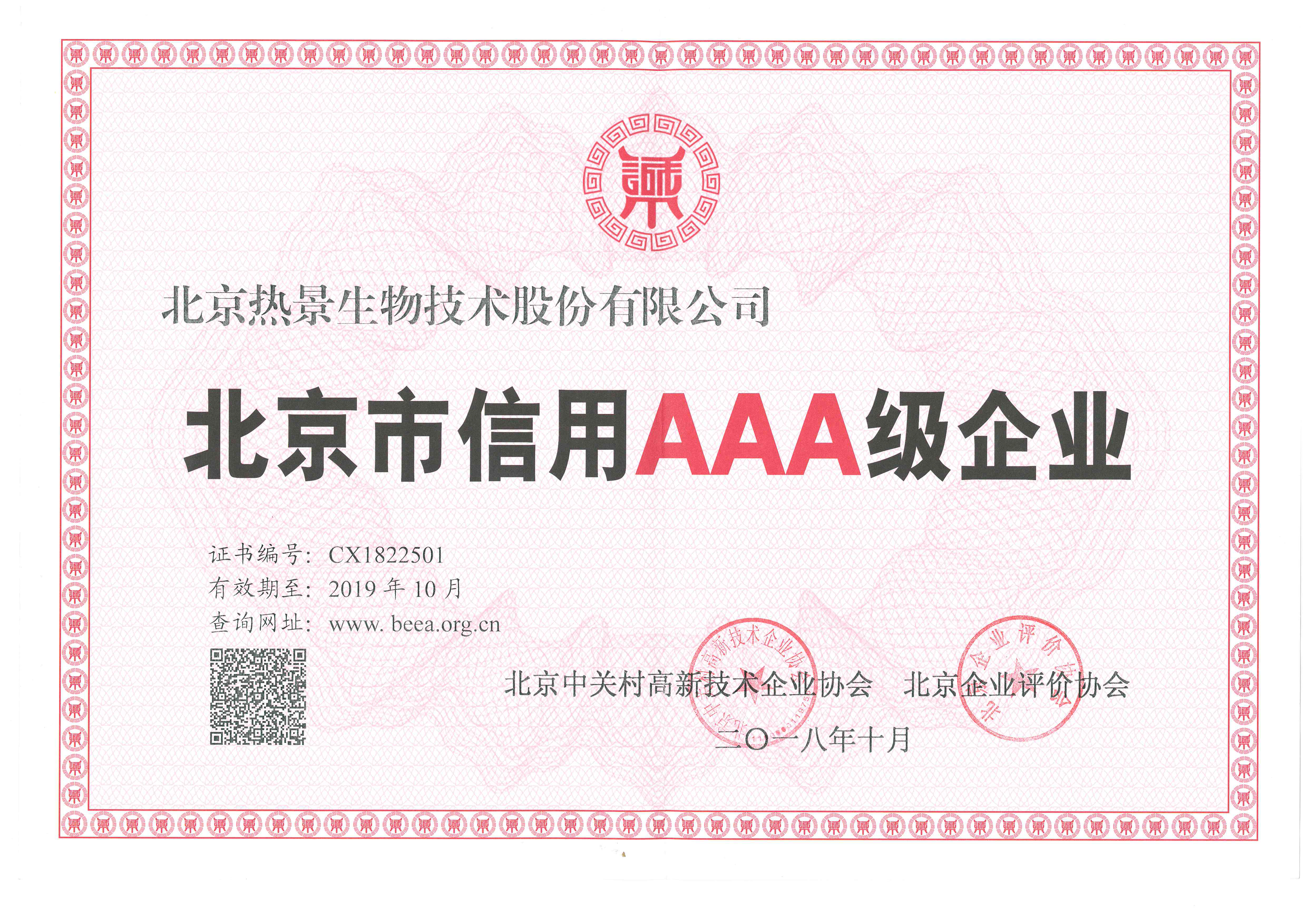 北京市信用AAA级企业